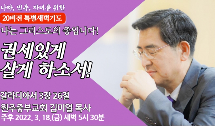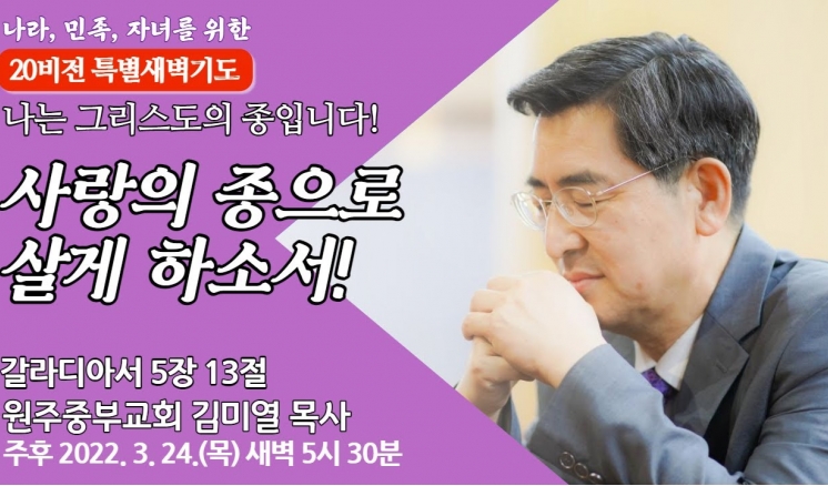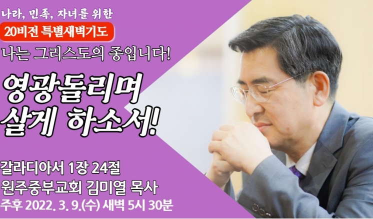 예배/말씀 - 주일예배 - 수요예배 - 특별예배 - QT 매일만나 - 특별새벽기도 - 말씀과기도축제 - 초빙강사 - CTS - 오디오설교(MP3) - 이전설교(18-21) 전체 20비전 고난주간 송구영신 분류 20비전 고난주간 송구영신 성령을 따라 살게 하소서! 20비전 2022,03,25 사랑의 종으로 살게 하소서! 20비전 2022,03,24 긍지를 가지고 살게 하소서! 20비전 2022,03,23 자유하며 살게 하소서! 20비전 2022,03,22 약속으로 살게 하소서! 20비전 2022,03,21 권세있게 살게 하소서! 20비전 2022,03,18 선택하며 살게 하소서! 20비전 2022,03,17 본받으며 살게 하소서! 20비전 2022,03,17 점검하며 살게 하소서! 20비전 2022,03,17 공개하며 살게 하소서! 20비전 2022,03,17 담대하게 살게 하소서! 20비전 2022,03,17 협력하며 살게 하소서! 20비전 2022,03,17 영광돌리며 살게 하소서! 20비전 2022,03,17 열심으로 살게 하소서! 20비전 2022,03,17 은혜로 살게 하소서! 20비전 2022,03,17 목록 제목+내용제목내용댓글이름닉네임아이디등록일태그 1 2 3 4 예배/말씀 주일예배 수요예배 특별예배 QT 매일만나 특별새벽기도 말씀과기도축제 초빙강사 CTS 오디오설교(MP3) 이전설교(18-21)