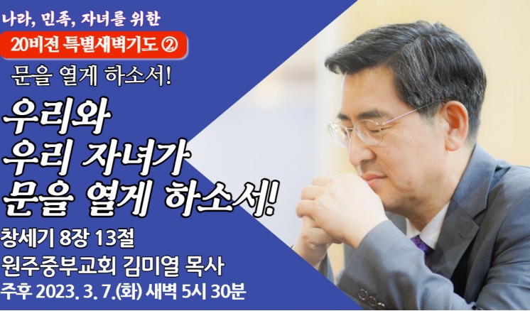 예배/말씀 - 주일예배 - 수요예배 - 특별예배 - QT 매일만나 - 특별새벽기도 - 말씀과기도축제 - 초빙강사 - CTS - 오디오설교(MP3) - 이전설교(18-21) 전체 20비전 고난주간 송구영신 분류 20비전 고난주간 송구영신 우리와 우리 자녀가 문을 열게 하소서! 20비전 2023,03,07 우리와 우리 자녀가 성장하게 하소서! 20비전 2023,03,06 내가 주께 기도하게 하소서! 송구영신 2022,12,29 기뻐하며 살게 하소서! 송구영신 2022,12,28 하나님의 뜻이 생활화 되게 하소서! 송구영신 2022,12,28 소망의 인내의 열매를 맺게 하소서! 송구영신 2022,12,26 사랑의 수고의 주인공이 되라! 송구영신 2022,12,23 믿음의 역사를 이루게 하소서! 송구영신 2022,12,22 생명의 열매를 거두라! 송구영신 2022,12,21 복음에 인생을 걸어라! 송구영신 2022,12,20 성삼위 하나님을 의지하라! 송구영신 2022,12,19 예수 그리스도를 시인하는 교회, 성도가 되게 하소서! 고난주간 2022,04,15 목록 제목+내용제목내용댓글이름닉네임아이디등록일태그 3 4 5 6 7 8 9 10 11 12 예배/말씀 주일예배 수요예배 특별예배 QT 매일만나 특별새벽기도 말씀과기도축제 초빙강사 CTS 오디오설교(MP3) 이전설교(18-21)