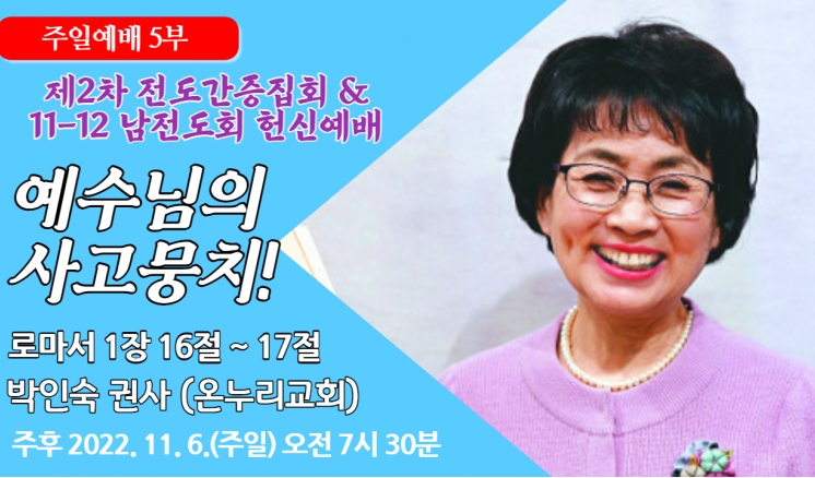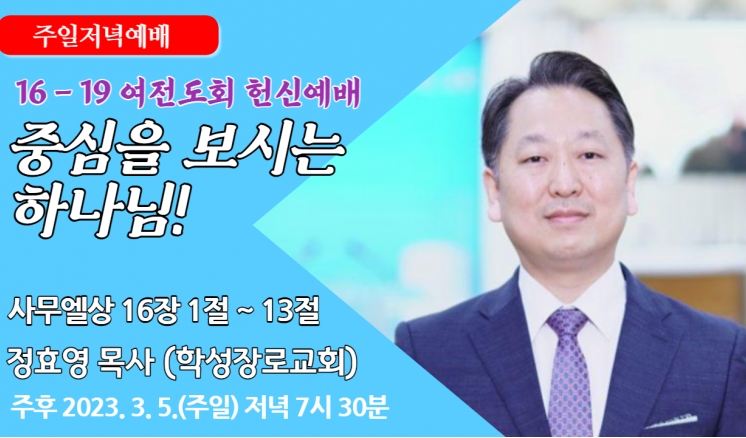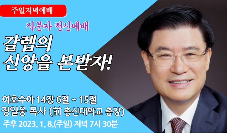 예배/말씀 - 주일예배 - 수요예배 - 특별예배 - QT 매일만나 - 특별새벽기도 - 말씀과기도축제 - 초빙강사 - CTS - 오디오설교(MP3) - 이전설교(18-21) 이 시대에 우리가 할 일! (230419) 스데바나와 같이 행하라! (230402) 중심을 보시는 하나님! (230305) 이스라엘의 집을 세운 것처럼! (230205) 분별하는 신앙! (230205) 갈렙의 신앙을 본받자! (230108) 구역장 뵈뵈! (230104) 마르다가 지적받은 이유! (221207) 이제는! (221204) 예수님의 사고뭉치! (221106) 오직 여호와를 섬기겠노라! (221030) 무릎 꿇고 엎드리는 아버지 어머니! (221019) 목록 제목+내용제목내용댓글이름닉네임아이디등록일태그 1 2 3 4 5 6 7 8 9 10 예배/말씀 주일예배 수요예배 특별예배 QT 매일만나 특별새벽기도 말씀과기도축제 초빙강사 CTS 오디오설교(MP3) 이전설교(18-21)