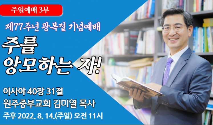 예배/말씀 - 주일예배 - 수요예배 - 특별예배 - QT 매일만나 - 특별새벽기도 - 말씀과기도축제 - 초빙강사 - CTS - 오디오설교(MP3) - 이전설교(18-21) 지금이 마지막이다! ②사랑하라! 2022,11,06 지금이 마지막이다! ①기도하라! 2022,10,30 우리 날 계수함을 가르치소서! 2022,10,23 예비하시는 하나님! 2022,10,16 인생에게 행하시는 기적! 2022,09,25 때를 따라 돕는 은혜로 살라! 2022,09,18 무엇으로 보답할까 2022,09,11 즐거울 때! 2022,08,28 고난당할 때! 2022,08,21 네 직무를 다하라! 2022,08,14 주를 앙모하는 자! 2022,08,14 기도 외에 다른 것으로는! 2022,08,07 목록 제목+내용제목내용댓글이름닉네임아이디등록일태그 13 14 15 16 17 18 19 20 21 22 예배/말씀 주일예배 수요예배 특별예배 QT 매일만나 특별새벽기도 말씀과기도축제 초빙강사 CTS 오디오설교(MP3) 이전설교(18-21)