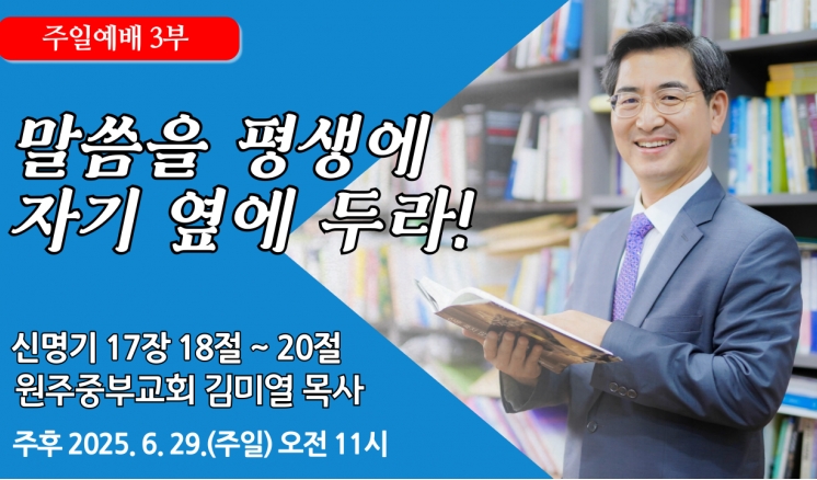 예배/말씀 - 주일예배 - 수요예배 - 특별예배 - QT 매일만나 - 특별새벽기도 - 말씀과기도축제 - 초빙강사 - CTS - 오디오설교(MP3) - 이전설교(18-21) 승리의 비결을 사용하라! 2025,07,06 하나님의 일꾼은? 2025,06,29 말씀을 평생에 자기 옆에 두라! 2025,06,29 은혜의 기회를 잡으라! 2025,06,22 하나님이 다스리신다! 2025,06,15 스스로 깨끗하게 하라! 2025,06,15 비전으로 행하라! 2025,06,08 약속의 은혜를 누리려면! 2025,06,01 복을 얻게 하라! 2025,06,01 호흡이 있는 자마다! 2025,05,25 성도의 가정에서 들려야 할 소리! 2025,05,25 나를 붙드소서! 2025,05,18 목록 제목+내용제목내용댓글이름닉네임아이디등록일태그 1 2 3 4 5 6 7 8 9 10 예배/말씀 주일예배 수요예배 특별예배 QT 매일만나 특별새벽기도 말씀과기도축제 초빙강사 CTS 오디오설교(MP3) 이전설교(18-21)