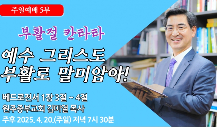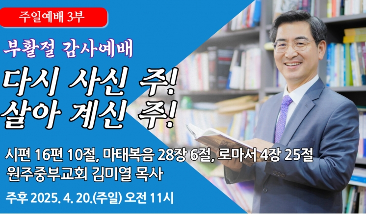 예배/말씀 - 주일예배 - 수요예배 - 특별예배 - QT 매일만나 - 특별새벽기도 - 말씀과기도축제 - 초빙강사 - CTS - 오디오설교(MP3) - 이전설교(18-21) 행복한 부부가 되라! 2025,05,18 부모를 경홀히 여기지 말라! 2025,05,11 자녀를 축복하라! 2025,05,04 믿는 도리를 굳게 잡으라! 2025,04,27 예수 그리스도 부활로 말미암아! 2025,04,20 다시 사신 주! 살아 계신 주! 2025,04,20 세례를 받음으로! 2025,04,13 조국이여 진흥하라! 2025,04,06 네가 나를 사랑하느냐! 2025,03,30 하나님이 쓰시는 사람! 2025,03,23 기쁨 충만한 삶을 위하여! 2025,03,23 도마 같은 믿음의 사람! 2025,03,16 목록 제목+내용제목내용댓글이름닉네임아이디등록일태그 1 2 3 4 5 6 7 8 9 10 예배/말씀 주일예배 수요예배 특별예배 QT 매일만나 특별새벽기도 말씀과기도축제 초빙강사 CTS 오디오설교(MP3) 이전설교(18-21)