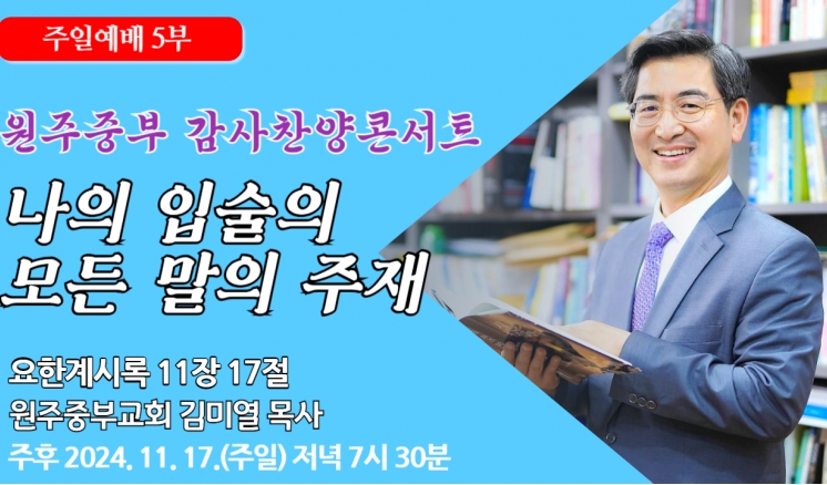 예배/말씀 - 주일예배 - 수요예배 - 특별예배 - QT 매일만나 - 특별새벽기도 - 말씀과기도축제 - 초빙강사 - CTS - 오디오설교(MP3) - 이전설교(18-21) 성도의 품격 2025,01,05 믿음 소망 사랑으로! 높이며 축복하자! 2025,01,05 예수께로가면! 2024,12,29 야고보 같은 성도! 2024,12,29 참 기쁜 소식! 2024,12,24 예수님을 힘입어 사는 성도! 2024,12,22 부흥하는 길 2024,12,15 오네시모 같은 성도 2024,12,15 말씀이 능력입니다! 2024,12,08 세나와 아볼로 같은 성도 2024,12,01 시간 속에서 일하시는 하나님 2024,11,24 나의 입술의 모든 말의 주재 2024,11,17 목록 제목+내용제목내용댓글이름닉네임아이디등록일태그 1 2 3 4 5 6 7 8 9 10 예배/말씀 주일예배 수요예배 특별예배 QT 매일만나 특별새벽기도 말씀과기도축제 초빙강사 CTS 오디오설교(MP3) 이전설교(18-21)